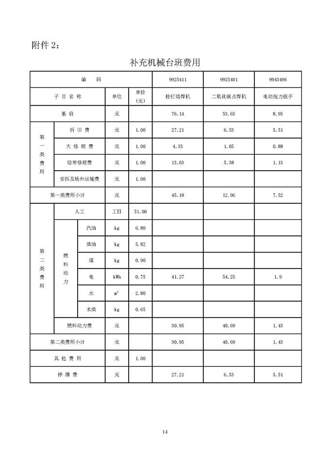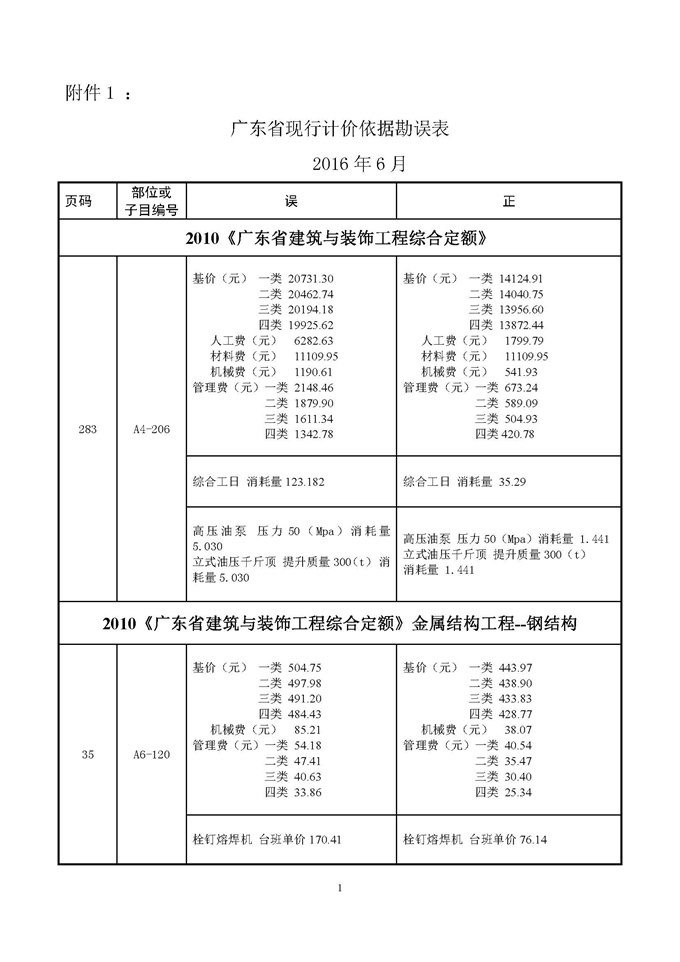 附件:1、广东省现行计价依据勘误表 2、补充机械台班费用