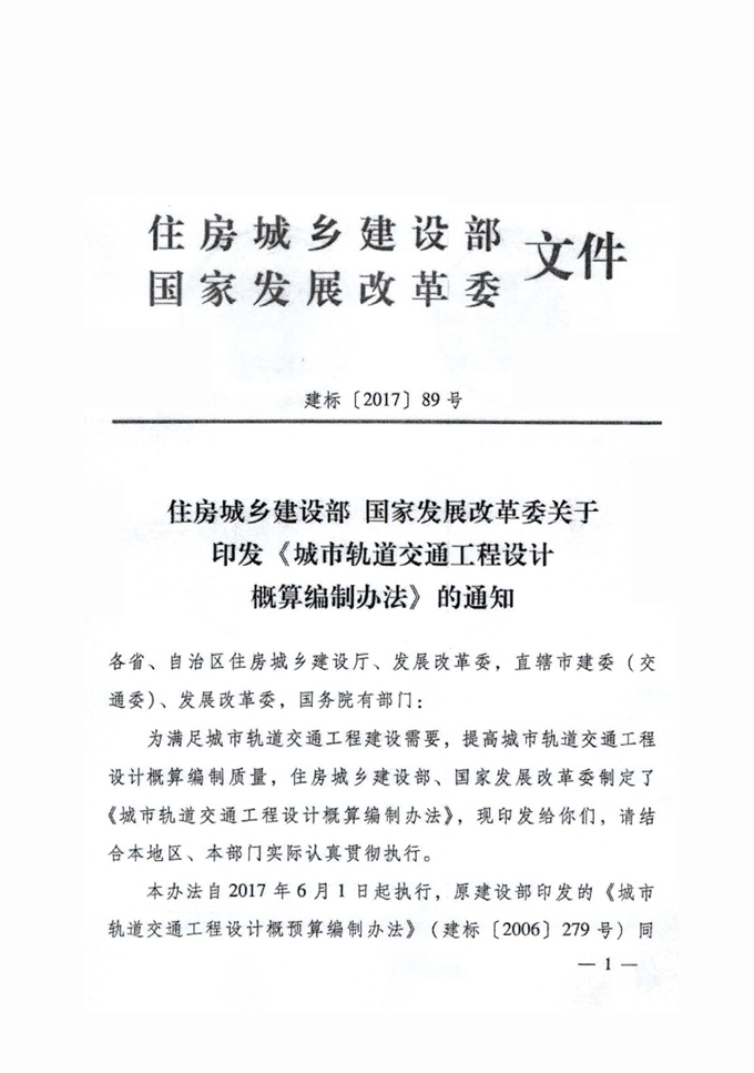 广东省住房和城乡建设厅 广东省发展和改革委员会转发住房城乡建设部 国家发展改革委 赢博(股份)有限公司官网印发《城市轨道交通工程设计概算编制办法》的通知