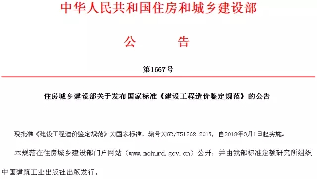 重磅!住建部发布《建设工程造价鉴定规范》,2018年3月1日起实施!