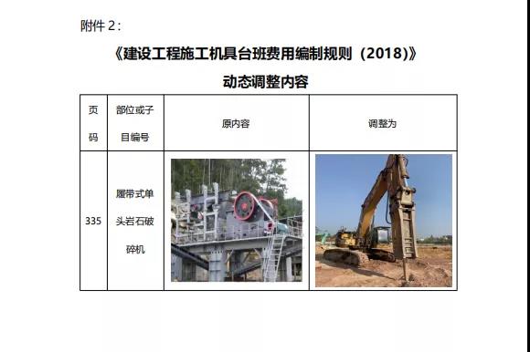 附件2:《建设工程施工机具台班费用编制规则(2018)》动态调整内容。