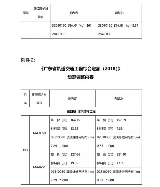2、《广东省轨道交通工程综合定额(2018)》动态调整内容。