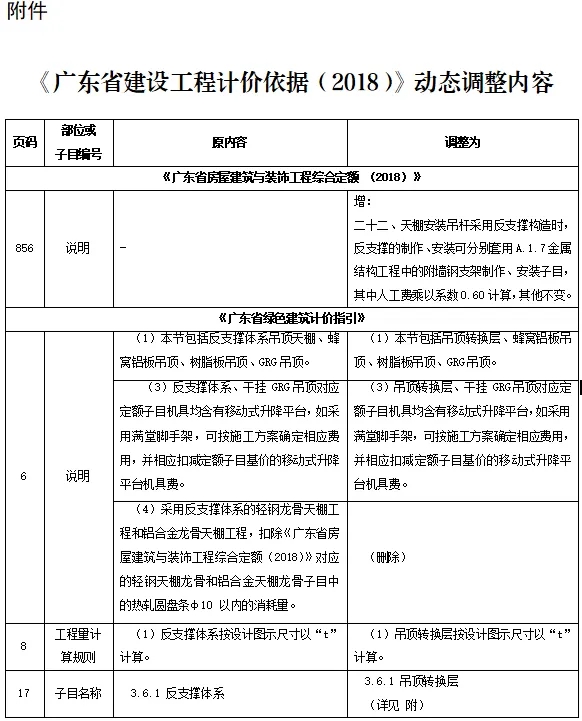 近期,我站组织专家研析了广东省建设工程定额动态管理系统收集的反馈意见,现将《广东省房屋建筑与装饰工程综合定额 (2018)》天棚工程、《广东省绿色建筑计价指引》吊顶转换层调整内容印发给你们,请遵照执行。