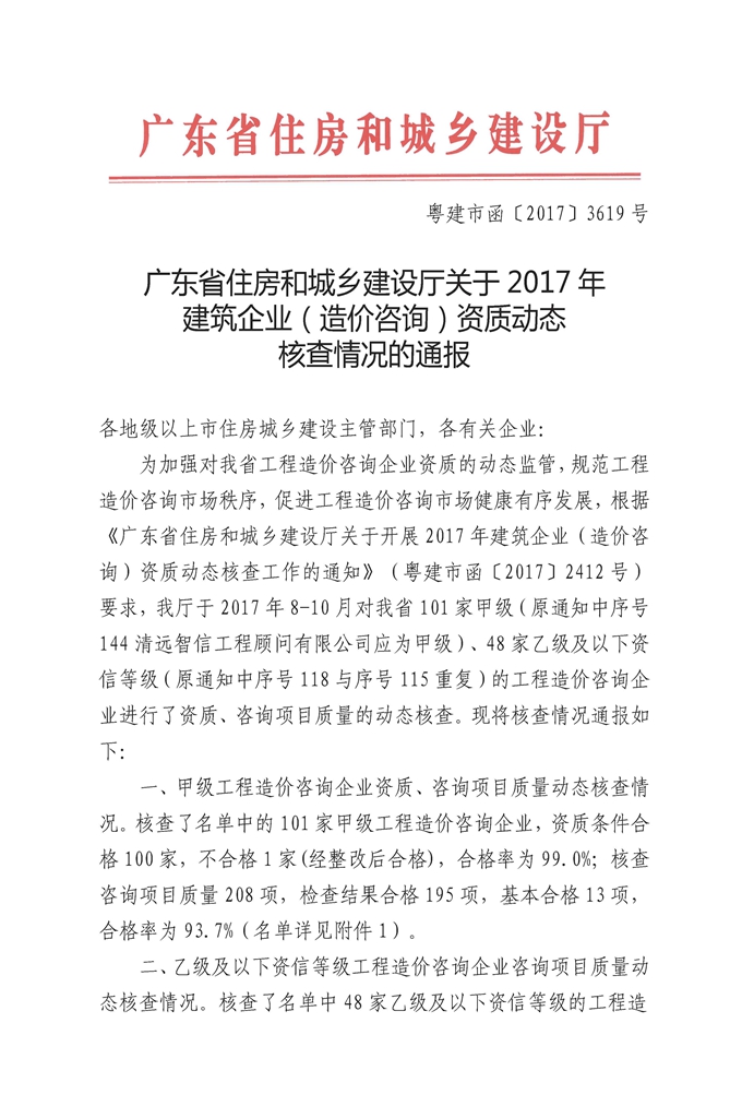 广东省住房和城乡建设厅赢博(股份)有限公司官网2017年建筑企业(造价咨询)资质动态核查情况的通报