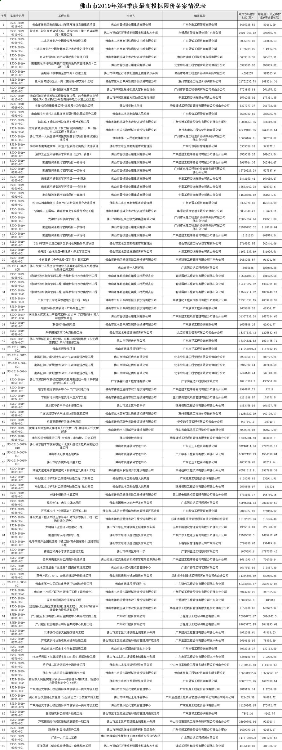 佛山市建设工程造价服务中心赢博(股份)有限公司官网公开2019年第4季度佛山市最高投标限价备案情况的通知