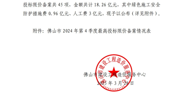 附件:佛山市2024年第4季度最高投标限价备案情况表
