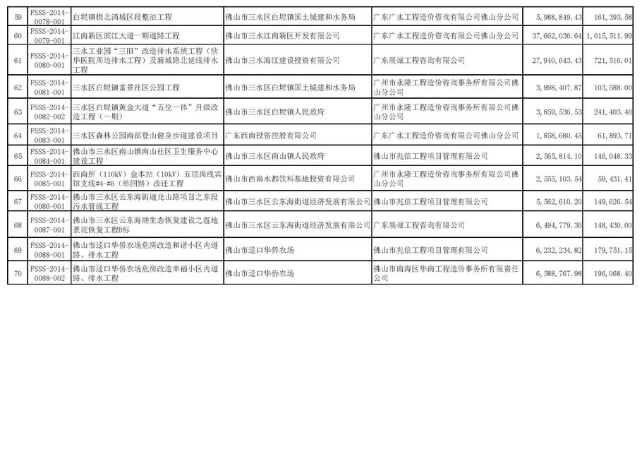 佛山市招标控制价备案情况表(2014-10-01至2014-12-31)