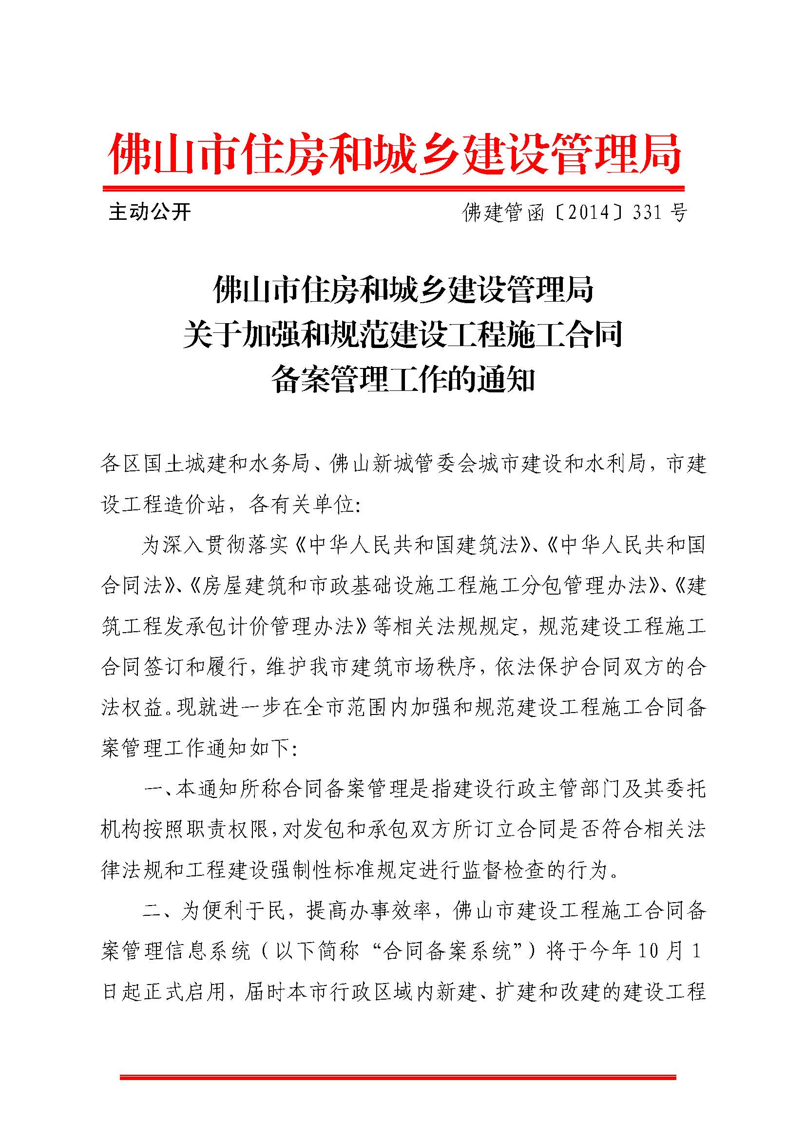 佛山市住房和城乡建设管理局赢博(股份)有限公司官网加强和规范建设工程施工合同备案管理工作的通知