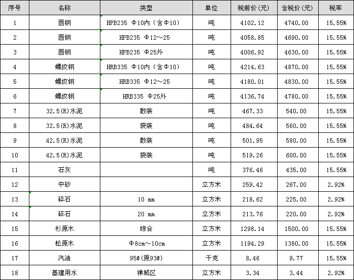 佛山市2019年03月份材料“综合价格”