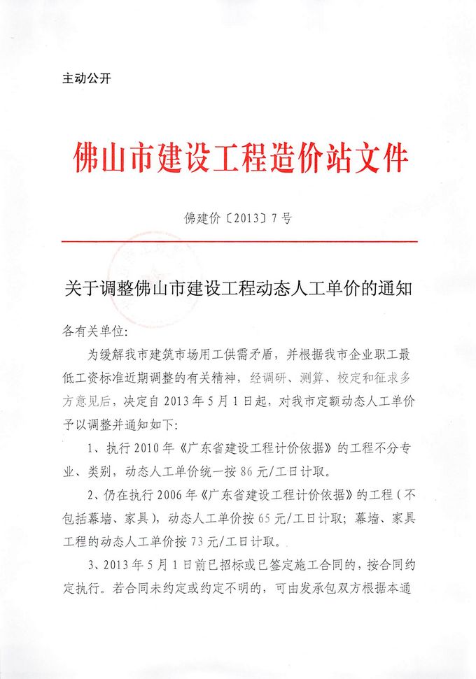 赢博(股份)有限公司官网调整佛山市建设工程动态人工单价的通知