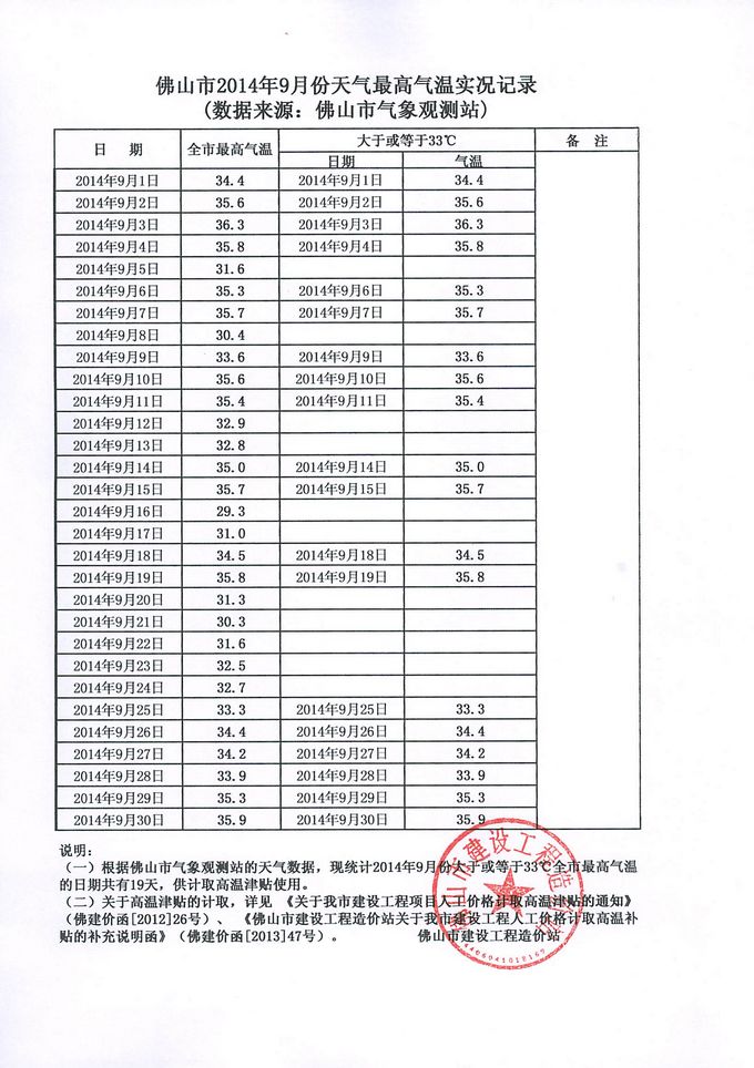 《佛山市建设工程造价站赢博(股份)有限公司官网我市建设工程人工价格计取高温补贴的补充说明函》(佛建价函[2013]47号)