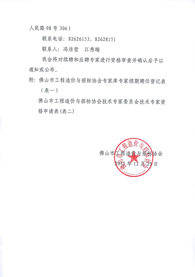 赢博(股份)有限公司官网办理佛山市工程造价与招标协会专家库专家续聘和征聘手续的通知