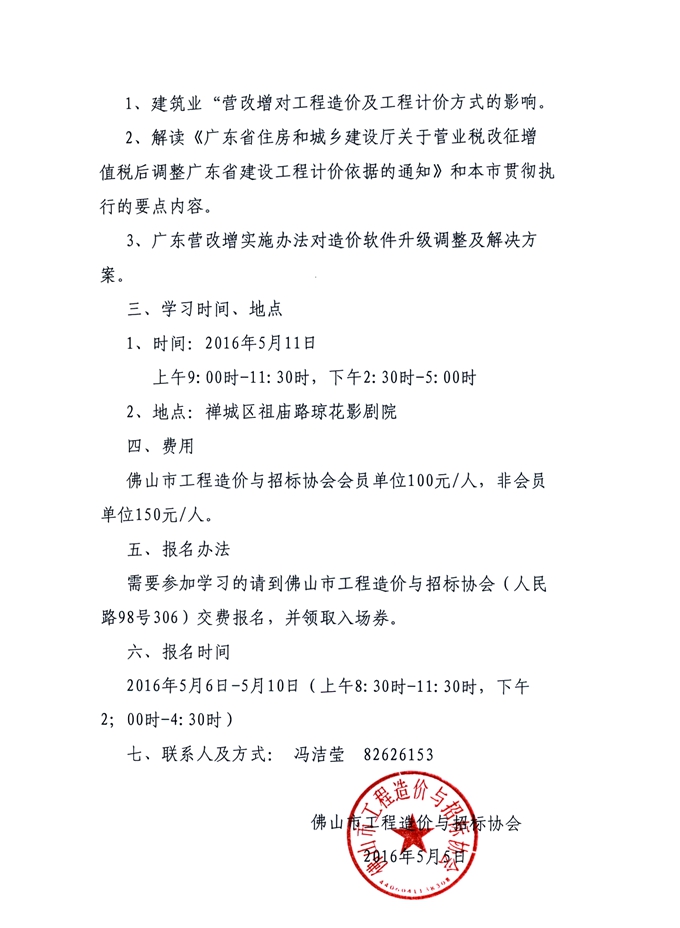 赢博(股份)有限公司官网举办佛山市营改增后工程造价政策解读学习班