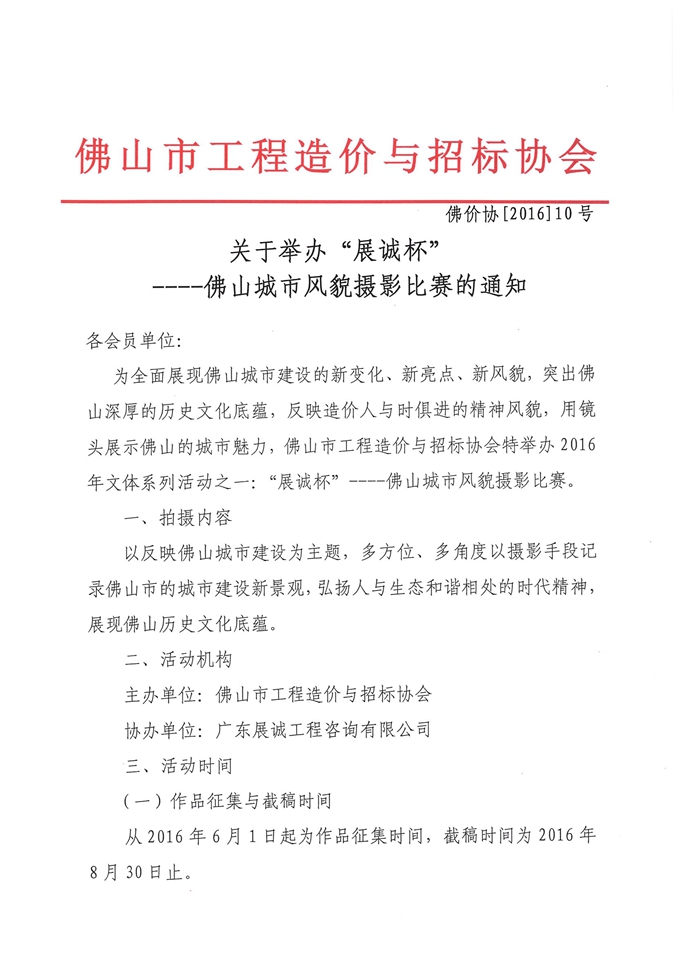 赢博(股份)有限公司官网举办“展诚杯”佛山城市风貌摄影比赛的通知