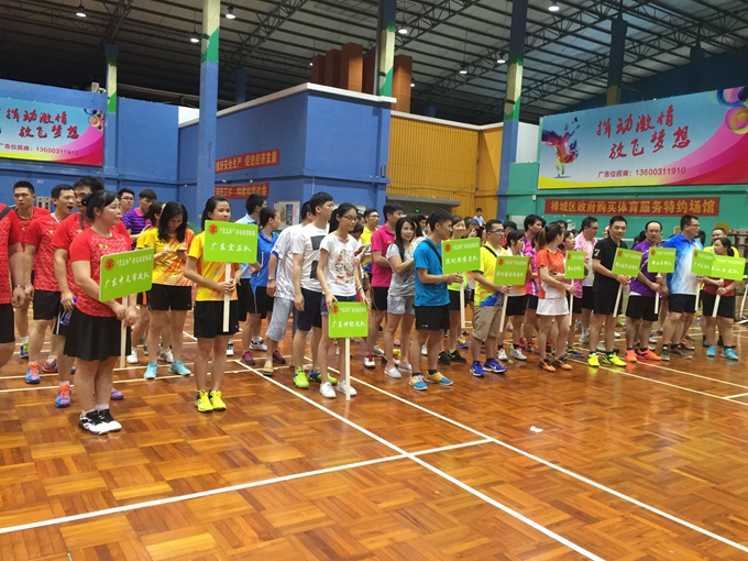 7月2日,佛山市工程造价与招标协会在张槎体育馆羽毛球场隆重举行了2016年“宏正杯”羽毛球团体赛。仲夏七月,本应是骄阳似火,也许是老天爷的眷顾,这两天都不时瓢泼着大雨,冲走了暑热,使我们运动员得以更好地发挥。8时许,24支队伍齐刷刷地排好了整齐的队列,进行了简短的开幕式后,在张思中会长和陈敏珊副会长的鼓励声中拉开了比赛的序幕。