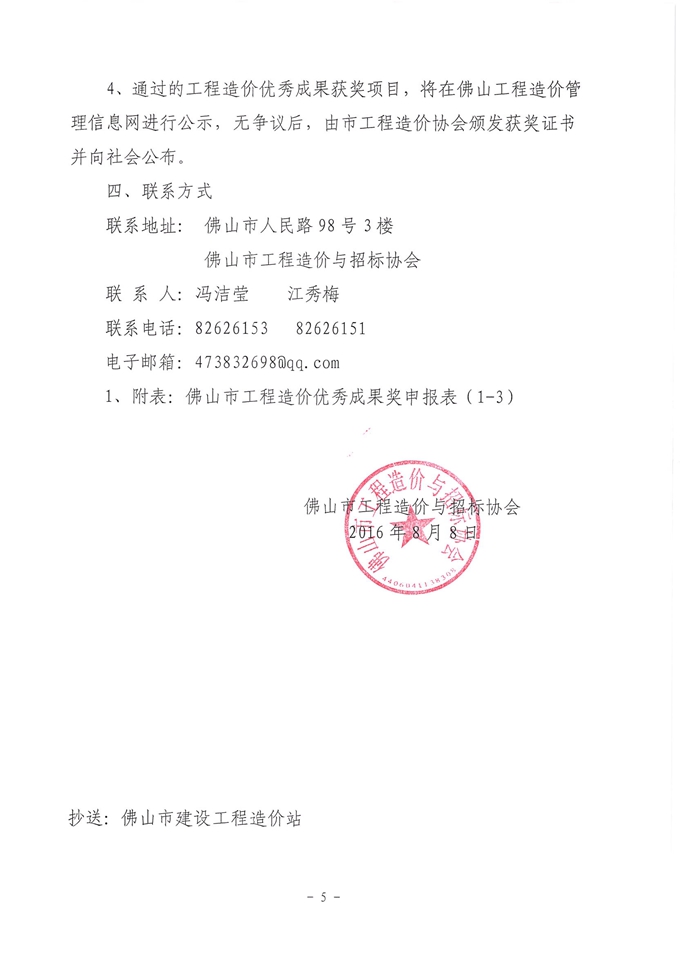 赢博(股份)有限公司官网开展佛山市第三届工程造价优秀成果评奖活动的通知