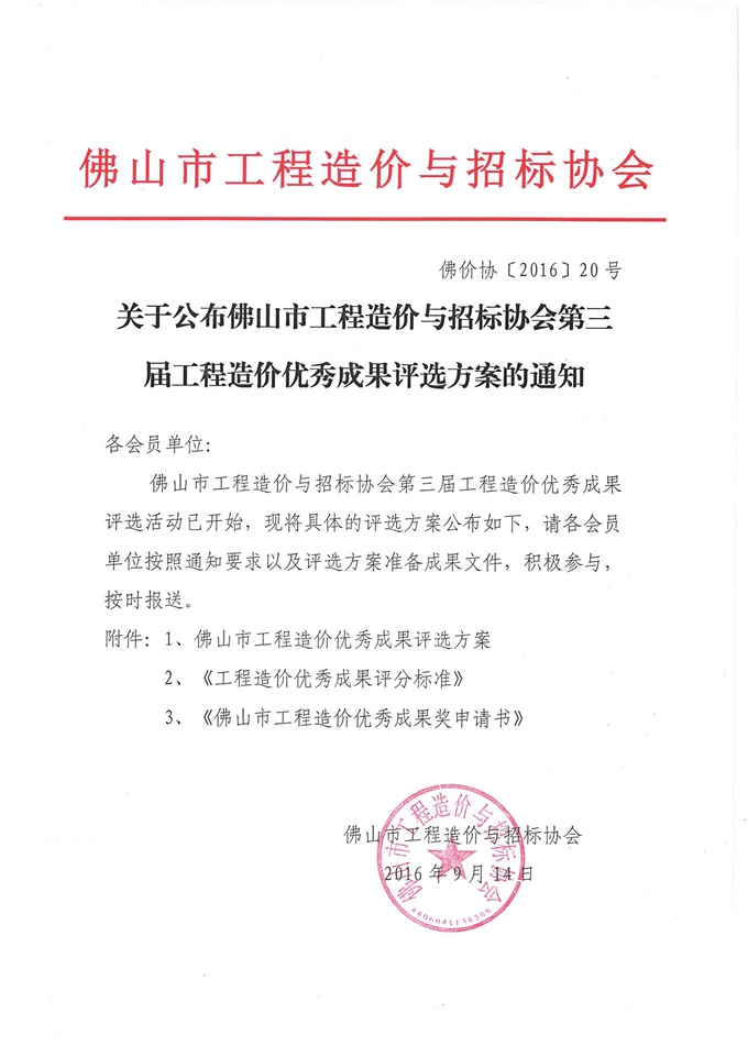 赢博(股份)有限公司官网公布佛山市工程造价与招标协会第三届工程造价优秀成果评选方案的通知