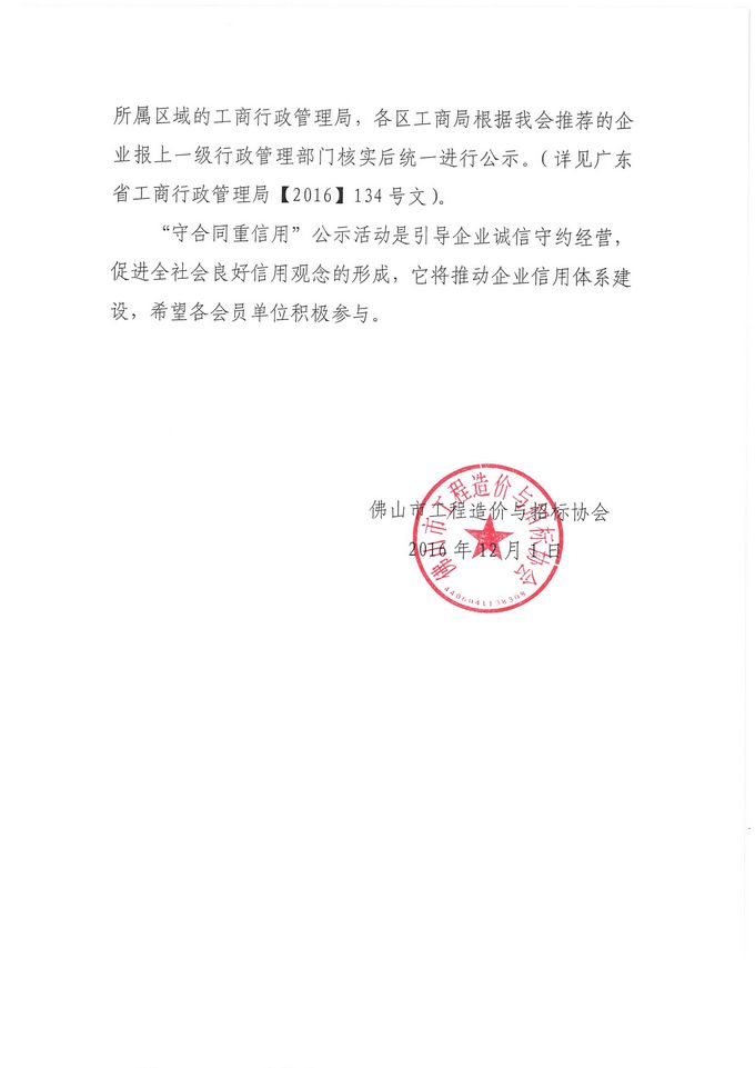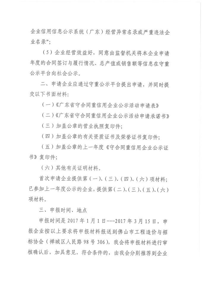 赢博(股份)有限公司官网开展广东省工商行政管理局“守合同重信用”公示活动的通知