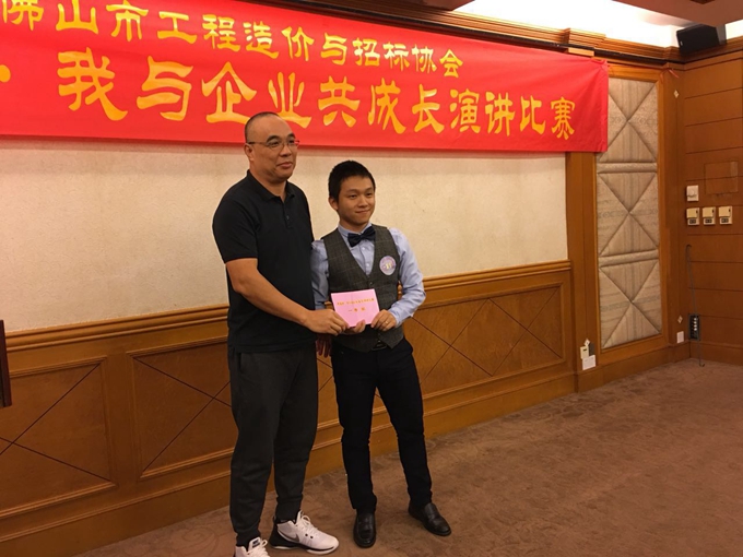 经过了紧张激烈的角逐,广东华联建设投资管理股份有限公司南海分公司的黄久安众望所归,摘得了本次比赛的桂冠,获得二等奖的是广东宏正工程咨询有限公司的邝慧仪、周梓慰,获得了三等奖的是广东宏正工程咨询有限公司的郭惠婉、曾敏桦和广东世纪达装饰工程有限公司的何绮婷,广东人信工程咨询有限公司的张东越是全场最瞩目的帅哥,他的气质和风格毫无悬念获得了最佳仪态奖,还有广东宏正工程咨询有限公司赖晓阳风趣的演讲也获得了最佳台风奖,来自广东人信工程咨询有限公司的葛婷婷、赖向玲、周倩莹和广东盛建工程事务咨询有限公司佛山分公司的葛改娜均获得了鼓励奖。最后,本次比赛的赞助单位广州建成工程咨询股份有限公司佛山分公司张永强经理寄望年轻的选手们,希望他们不忘初心,牢记使命,在造价和招标行业中,发挥一名建设者的作用,并对比赛的成功举办表示祝贺!再次感谢广州建成工程咨询股份有限公司佛山分公司!!!