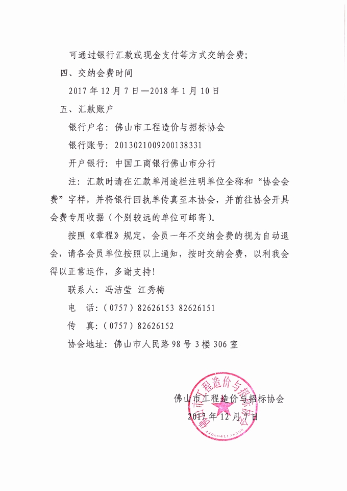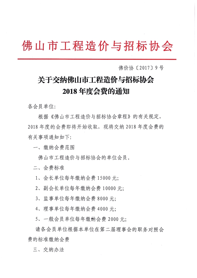 赢博(股份)有限公司官网交纳佛山市工程造价与招标协会2018年度会费的通知