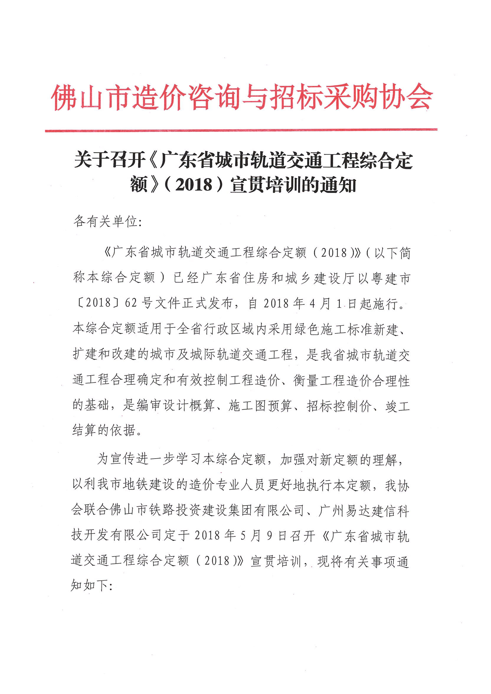 赢博(股份)有限公司官网召开《广东省城市轨道交通工程综合定额》(2018)宣贯培训的通知
