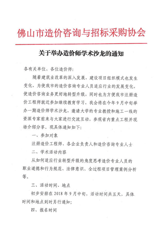 赢博(股份)有限公司官网举办造价师学术沙龙的通知