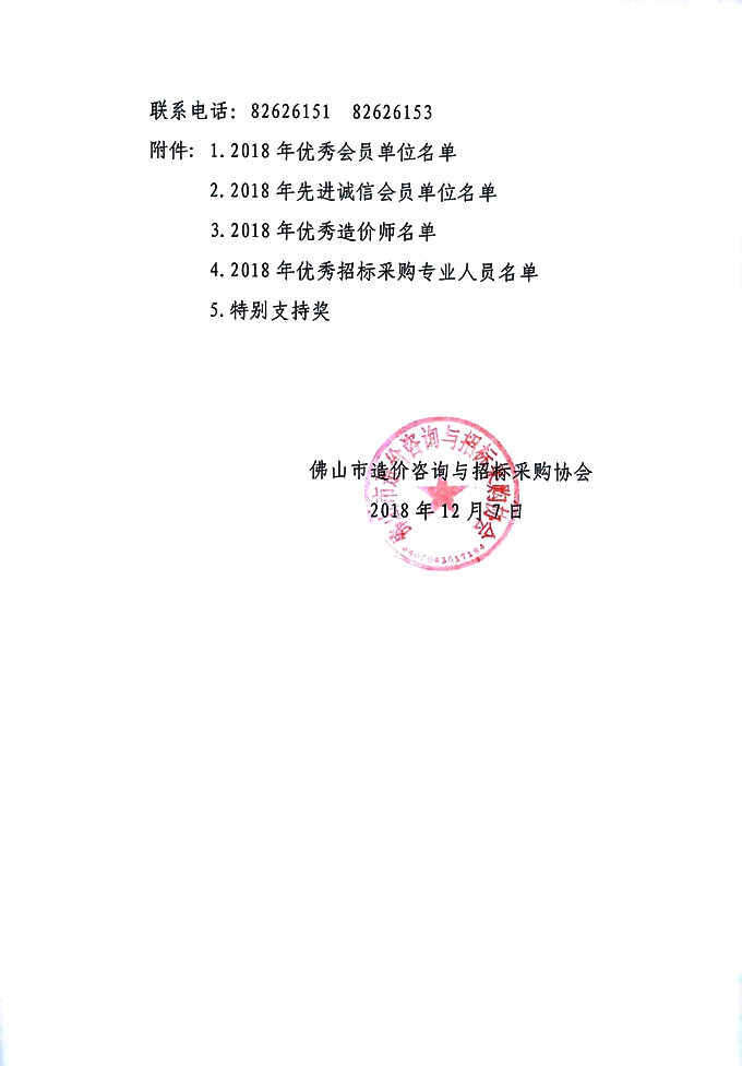 赢博(股份)有限公司官网佛山市造价咨询与招标采购协会2018年度优秀会员单位 先进诚信会员单位 优秀造价师 优秀招标采购专业人员评选结果的公示通知