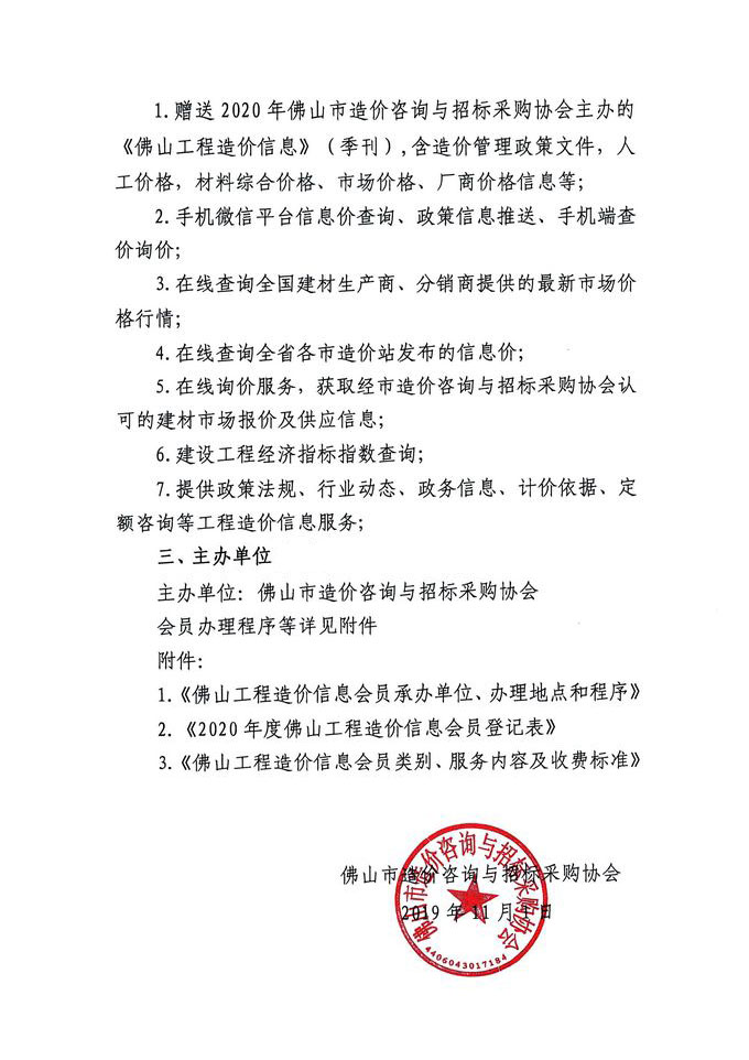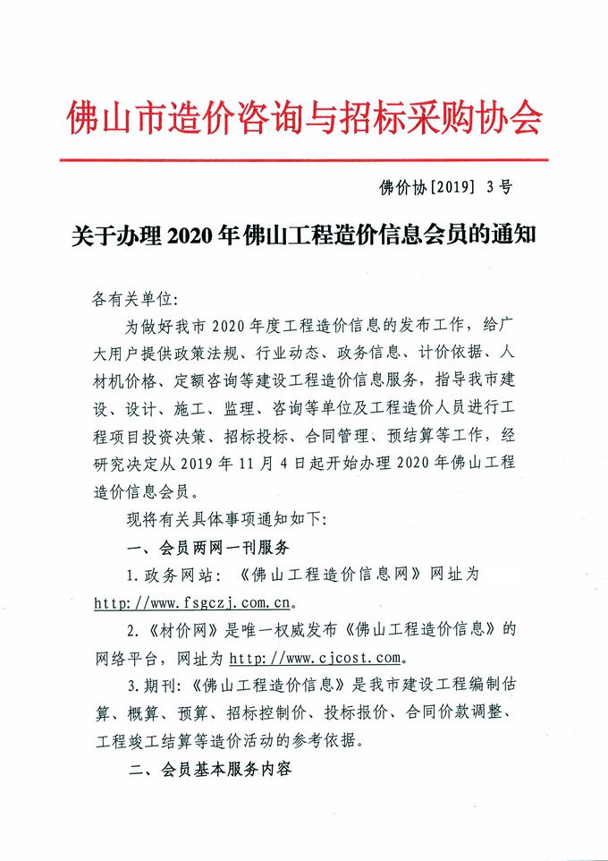 赢博(股份)有限公司官网办理2020年佛山工程造价信息会员的通知