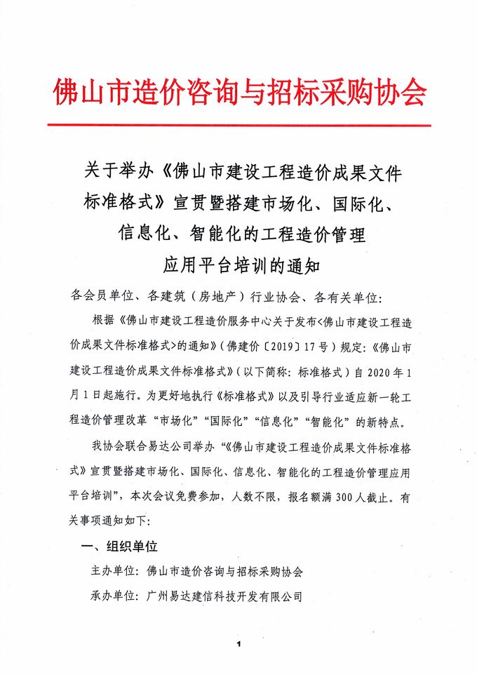 赢博(股份)有限公司官网举办《佛山市建设工程造价成果文件标准格式》宣贯暨搭建市场化、国际化、信息化、智能化的工程造价管理应用平台培训的通知