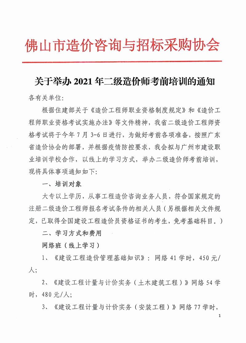 赢博(股份)有限公司官网举办2021年二级造价师考前培训的通知