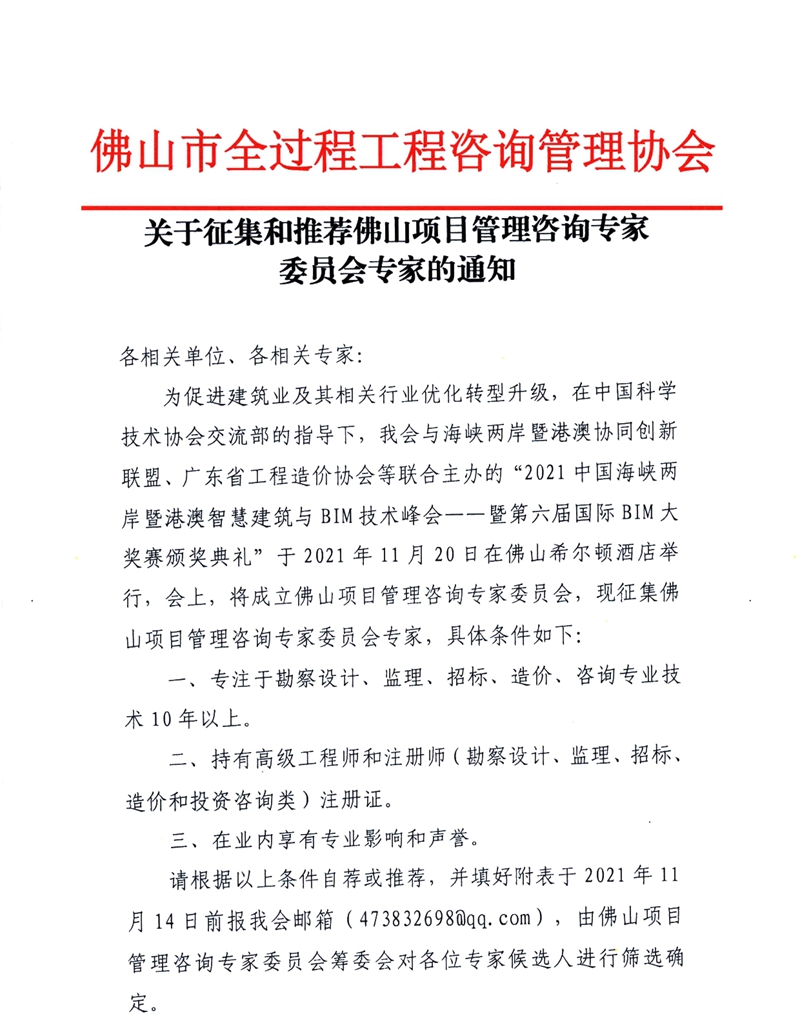 赢博(股份)有限公司官网征集和推荐佛山项目管理咨询专家委员会专家的通知