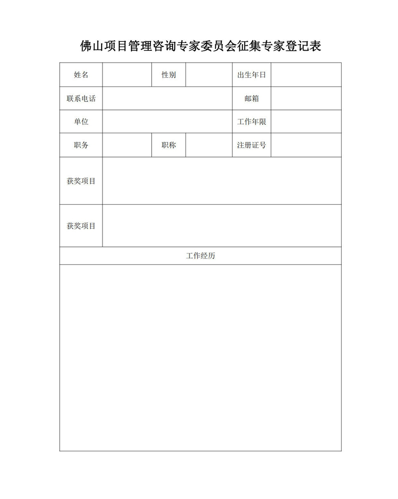 附件:佛山项目管理咨询专家委员会征集专家登记表