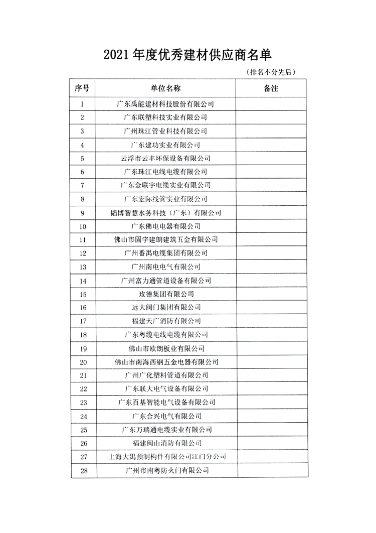 赢博(股份)有限公司官网表彰2021年度优秀建材供应商的通知