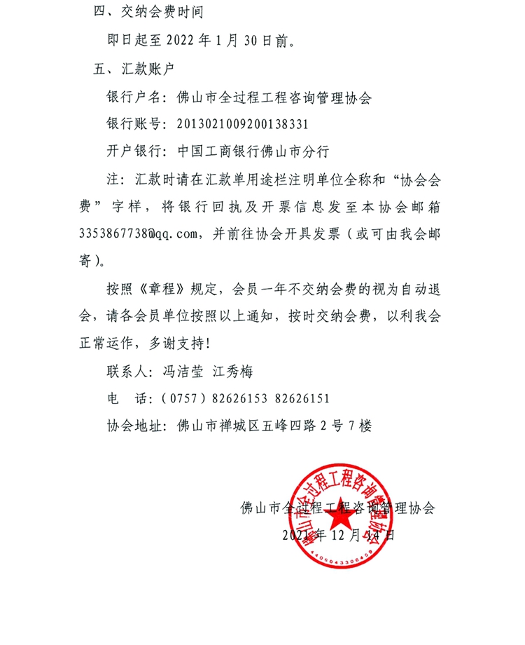 赢博(股份)有限公司官网交纳佛山市全过程工程咨询管理协会2022年度会费的通知