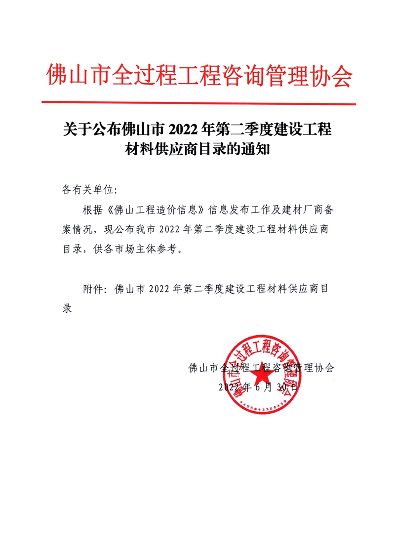 赢博(股份)有限公司官网公布佛山市2022年第二季度建设工程材料供应商目录的通知
