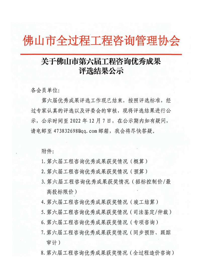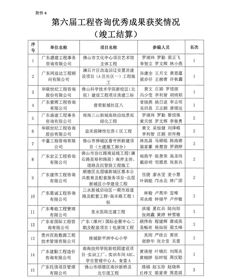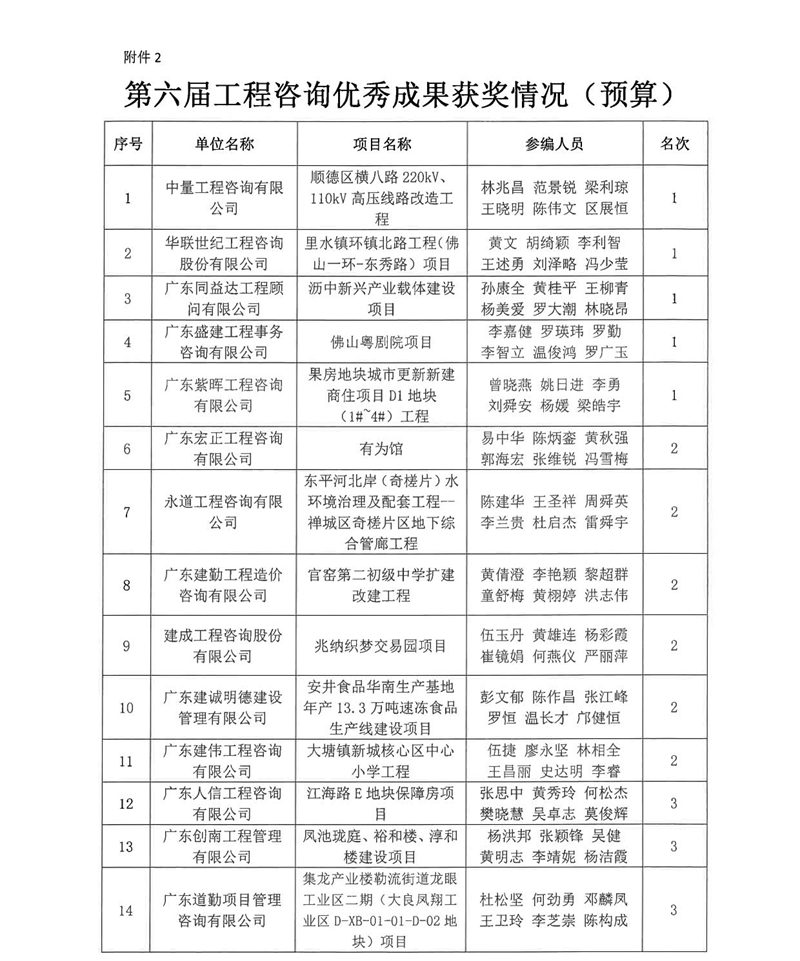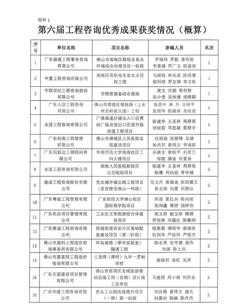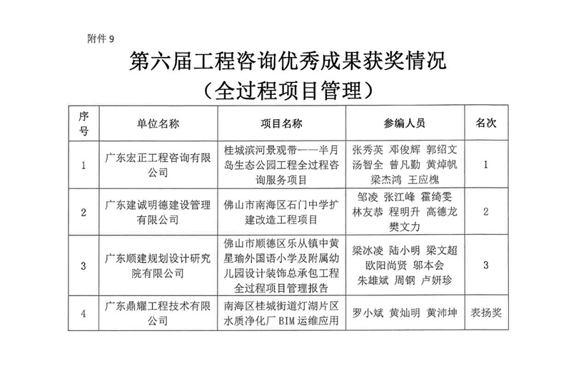 赢博(股份)有限公司官网佛山市第六届工程咨询优秀成果评选结果公示