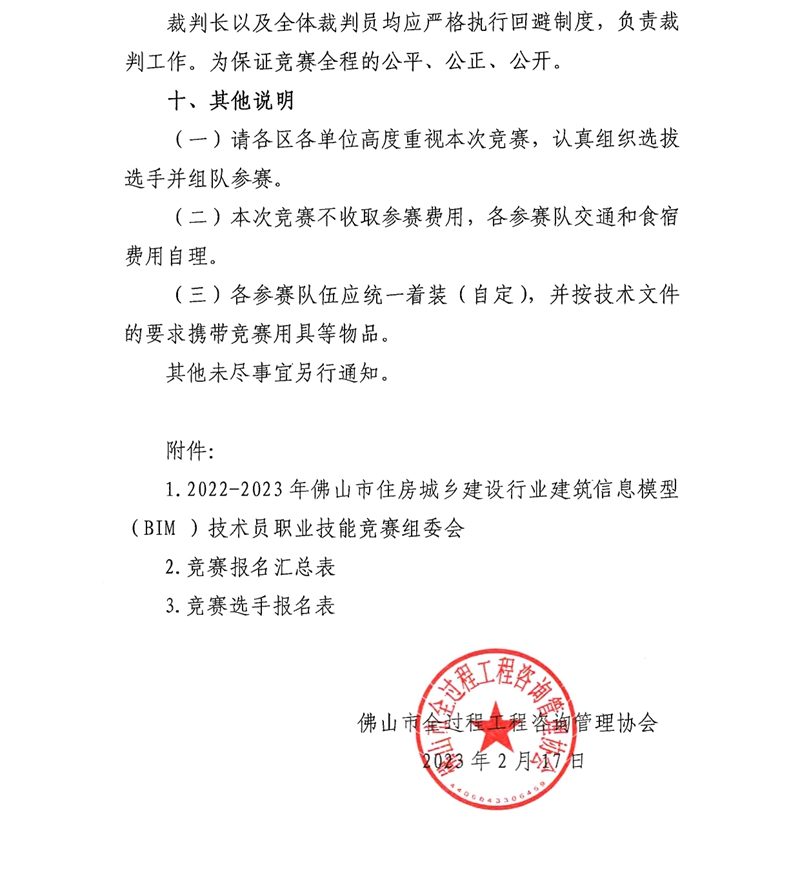 附件1:2022-2023年佛山市住房城乡建设行业建筑信息模型(BIM )技术员职业技能竞赛组委会