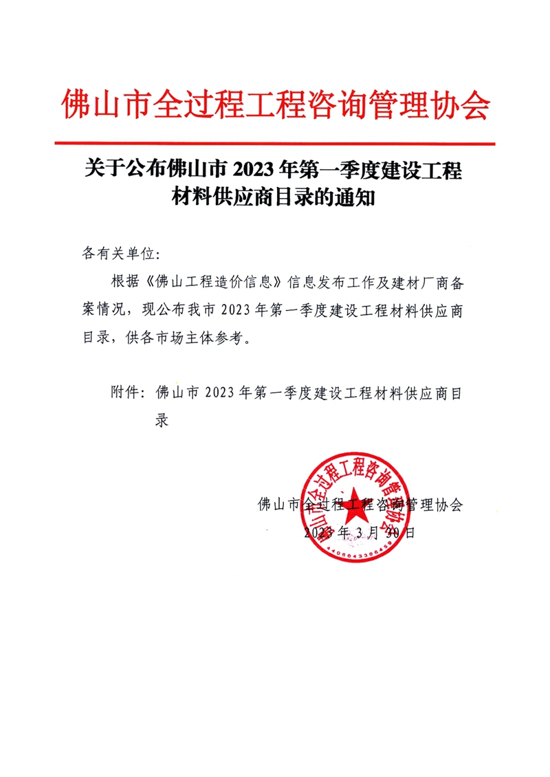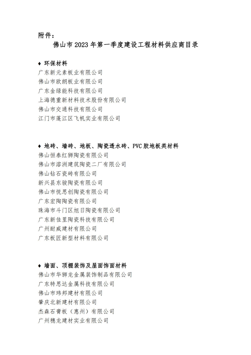 附件:佛山市2023年第1季度建设工程材料供应商目录
