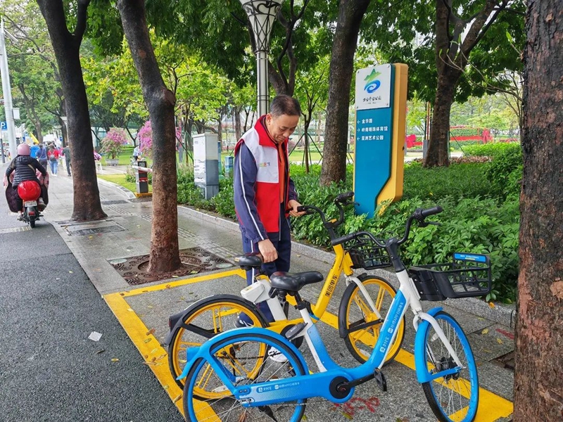 在行进过程中,参加活动的大家开启另一重身份——环保公益志愿者,志愿者们拿着垃圾夹,将市民丢弃的垃圾,大的如塑料瓶、包装袋,小的如烟头、纸屑,全部装入垃圾袋中,扶正被风雨吹倒的共享自行车,以实际行动宣传垃圾分类、保护生态、创建文明城市的理念,倡导节能减排、低碳出行,为佛山打造绿色宜居环境贡献社会组织的一份力量。