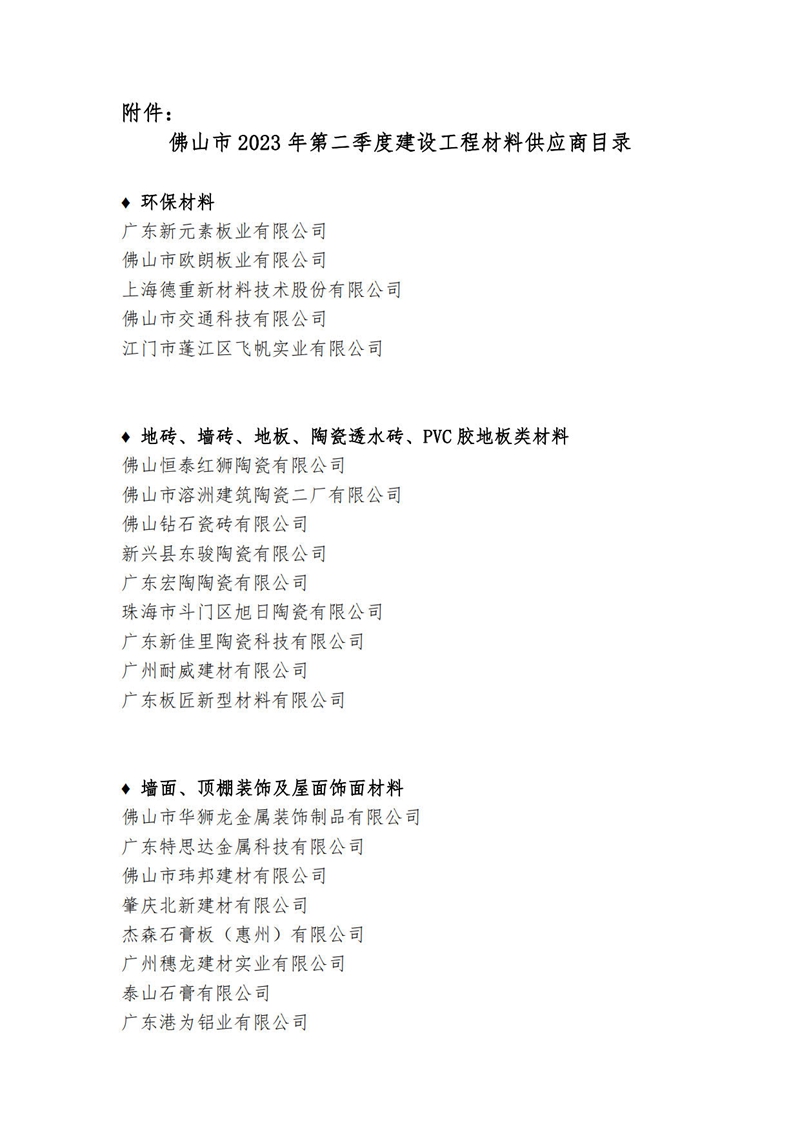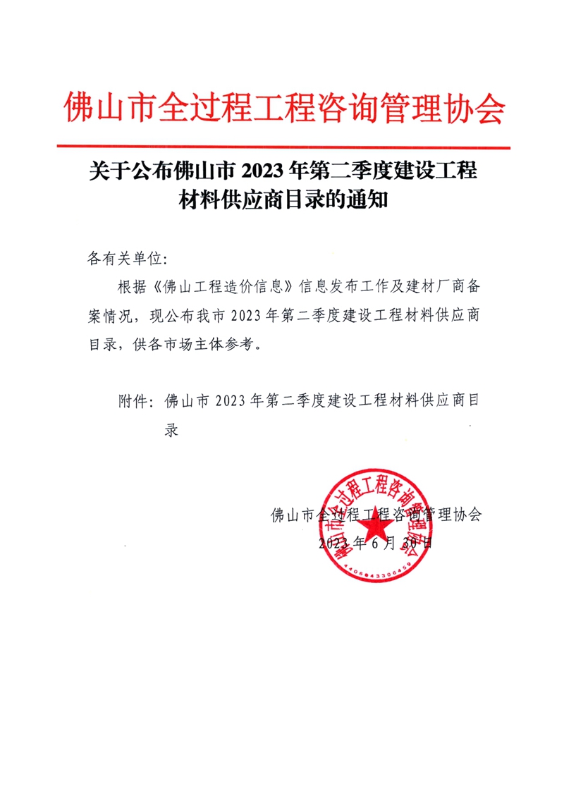 赢博(股份)有限公司官网公布佛山市2023年第二季度建设工程材料供应商目录的通知