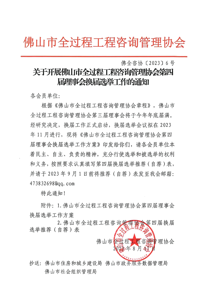 赢博(股份)有限公司官网开展佛山市全过程工程咨询管理协会第四届理事会换届选举工作的通知