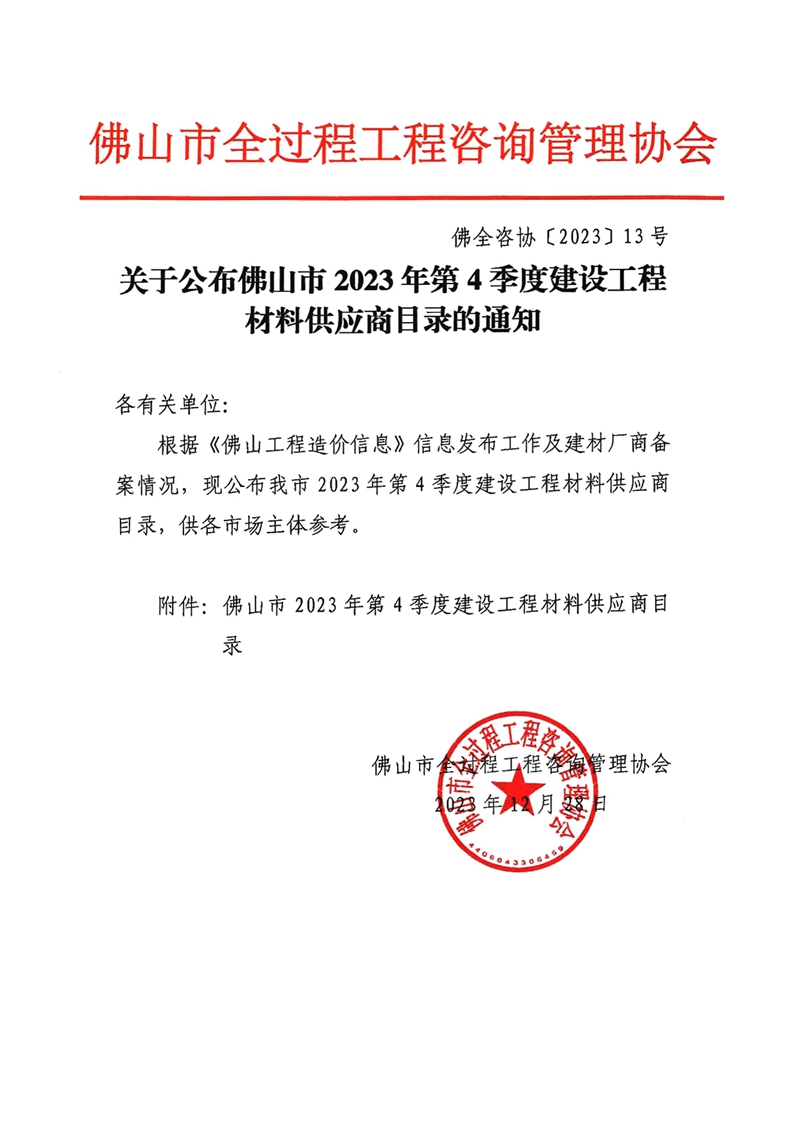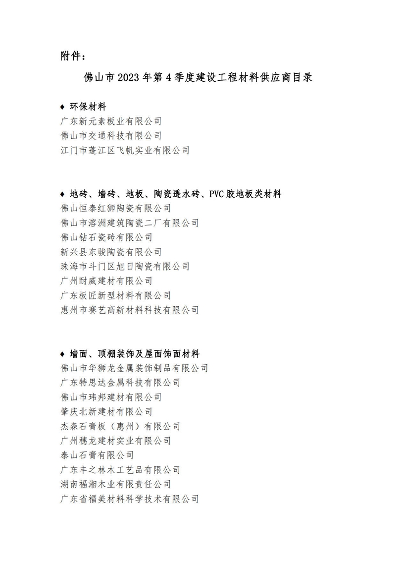 赢博(股份)有限公司官网公布佛山市2023年第4季度建设工程材料供应商目录的通知