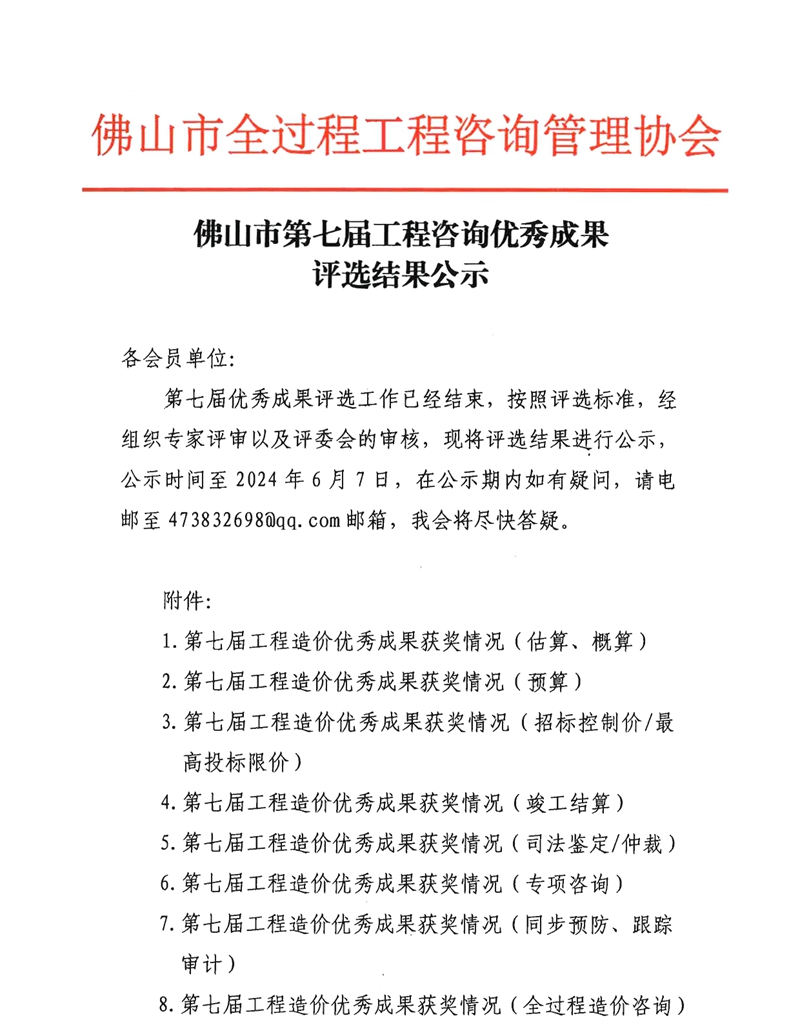 佛山市第七届工程咨询优秀成果评选结果公示