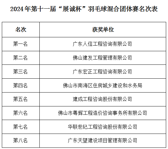 “展诚”相遇 无“羽”伦比 | 佛山市全过程工程咨询管理协会2024年第十一届“展诚杯”羽毛球团体赛圆满落幕