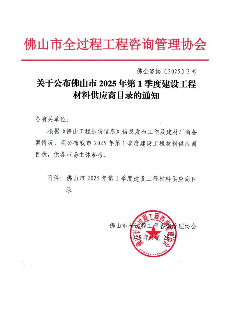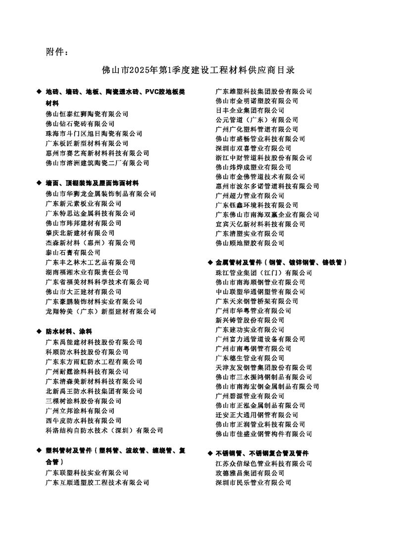 附件:佛山市2025年第1季度建设工程材料供应商目录