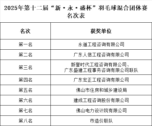 “新·永·盛杯”羽毛球团体赛圆满落幕,工程咨询业活力绽放
