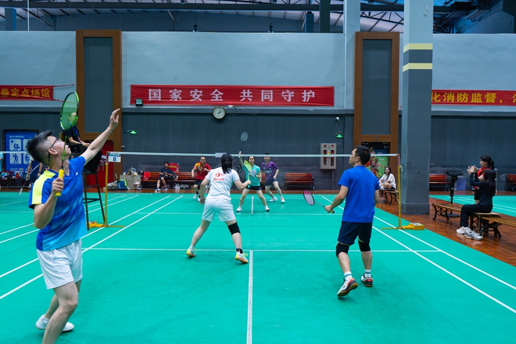 开幕式简短热烈,开赛后比赛迅速进入状态。赛场上,选手精神抖擞、斗志昂扬,高远球、扣杀等精湛球技频现,羽毛球如闪电穿梭,选手身姿矫健,精彩瞬间赢阵阵喝彩。