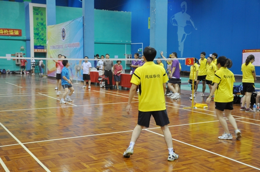 由佛山市工程造价协会主办,广东人信工程咨询有限公司协办的2012年佛山市工程造价协会“人信”杯羽毛球团体邀请赛于8月11日在张槎体育中心经过了一天紧张激烈的角逐,已圆满落下了帷幕。本次比赛,得到了各会员单位的重视和支持,共有17支队伍参加,采用男双、女双、混双的形式,各队经过上午的小组赛后,有8个队进入了下午的半决赛,最后决出了前6名,分别是:第六名:佛山市建设工程造价站、第五名:佛山市住房和城乡建设管理局,第四名:广东宏正咨询有限公司,第三名:广东人信工程咨询有限公司,第二名:佛山市粤辉工程造价咨询事务所有限公司,第一名:广东中天市政设计研究院。比赛结束后,协会领导对获奖队伍进行了颁奖。