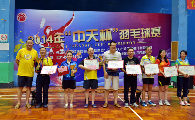 6月14日,禅城区张槎体育中心羽毛球馆热闹非凡,由佛山市工程造价协会主办的一年一度羽毛球赛正在这里紧张地进行。本届冠名为“中天杯”羽毛球赛,是由广东中天市政工程设计有限公司全力支持赞助, 广大会员单位积极响应和支持,踊跃报名,共有24支队伍参加了角逐,其规模之大,参赛人数是历年之最。经过了整整一天的激烈角逐,比赛在一片掌声和欢呼声中圆满落下帷幕。最后决出了前八名分别是:第八名:佛山市天诚工程造价咨询有限公司,第七名:广东宏正工程咨询有限公司,第六名:广东省国际工程咨询有限公司,第五名:佛山市粤辉工程造价咨询事务所有限公司,第四名:广州易达建信科技开发有限公司,第三名:佛山市住房和城乡建设管理局,第二名:广东中天市政工程设计有限公司,第一名:佛山市房建集团有限公司。