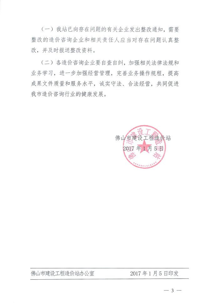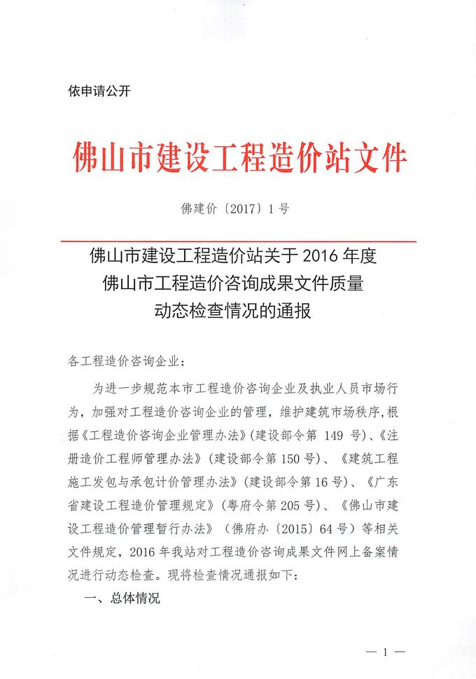 佛山市建设工程造价站赢博(股份)有限公司官网2016年度佛山市工程造价咨询成果文件质量动态检查情况的通报