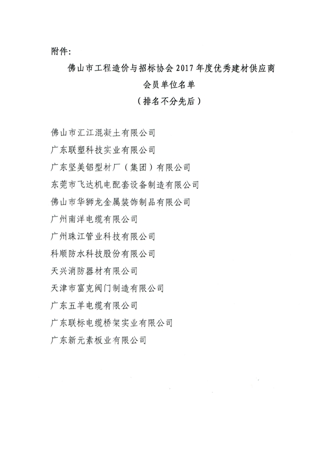 赢博(股份)有限公司官网表彰2017年度优秀建材供应商会员单位的通知